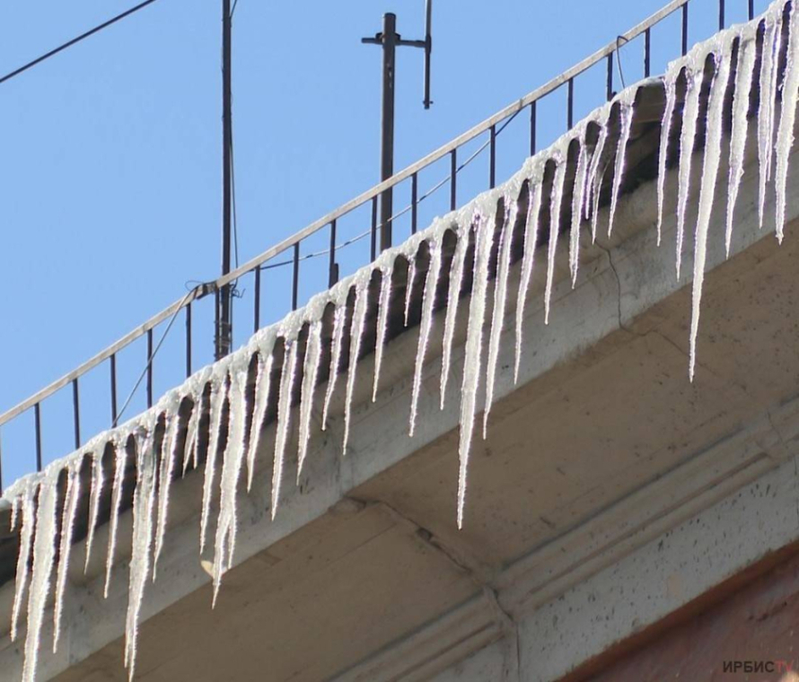 Сосульки огромных размеров свисают с карнизов зданий и могут привести к трагедии. Ледяные глыбы образовались во время недавнего разгула стихии, а днем, под лучами солнца, начинают таять и срываться вниз, передает корреспондент irbistv.kz.